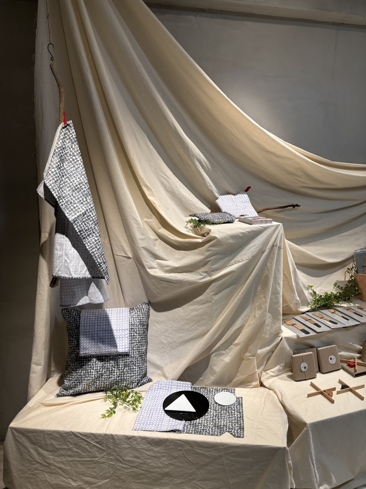 今回の展覧会では、そうした作品がどのようにコースターやバッグなど、日常で使えるアイテムへと形を変えていくか、そのプロセスも紹介されています。アートが暮らしの中に自然と入り込んでいく、その流れを感じていただける展示です。