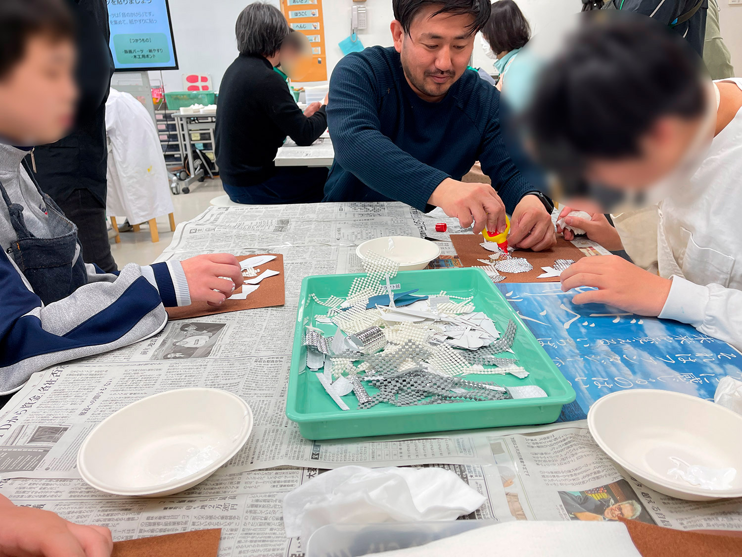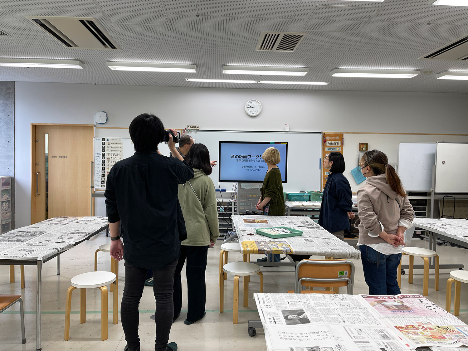 それぞれが音を形で説明しながら、熱心に制作を進めました。先生方も各席につきながらサポートしてくださり、生徒たちは安心して取り組むことができました。